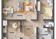 Wohnzimmer und Essbereich sind miteinander verbunden und die geräumige Küche wird schnell zum beliebten Familientreffpunkt. Bei Bedarf, zum Beispiel für das Büro zu Hause, kann im Erdgeschoss noch ein weiteres Zimmer eingeplant werden. Das "Flair 110" ist großzügig gestaltet, sowohl im Schlaf-, Kinder- und Gästezimmer, als auch im Bad. Dieses Familienhaus überzeugt mit seinem Charme.